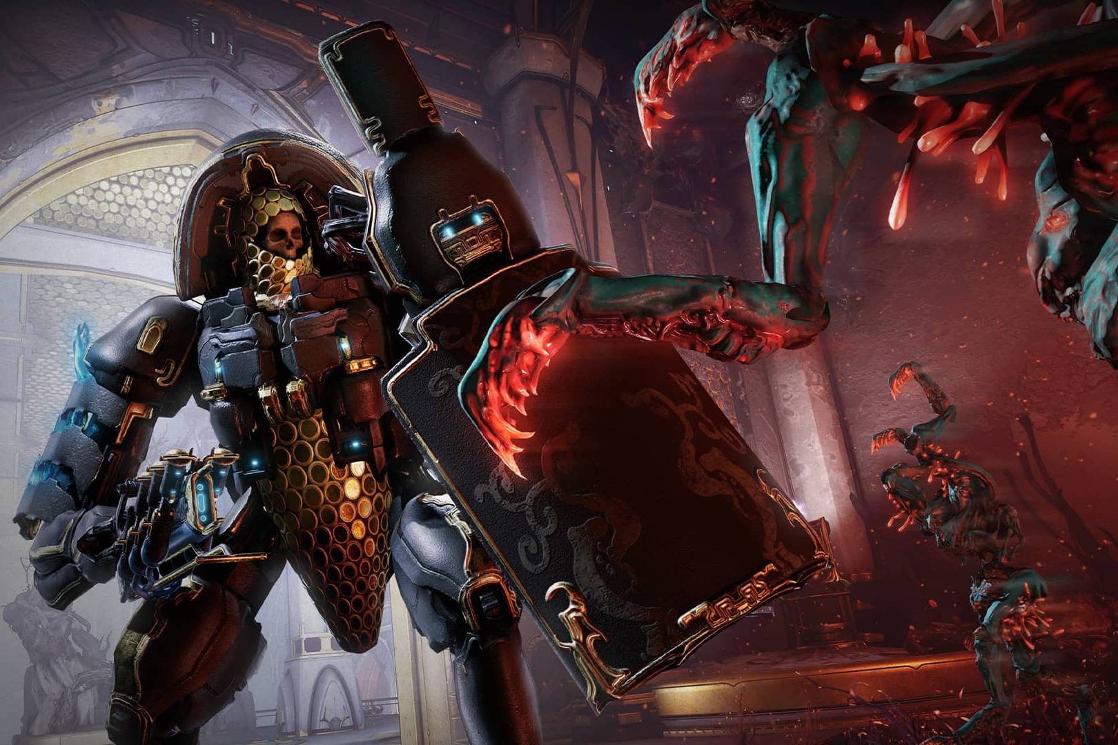 - Fixed ornate Necramech (with a spoiler name that pays homage to a certain game series) missing its Helmet in the alcove in the Necraloid Syndicate room after the “One Last Ride” stage of the Heart of Deimos Quest.