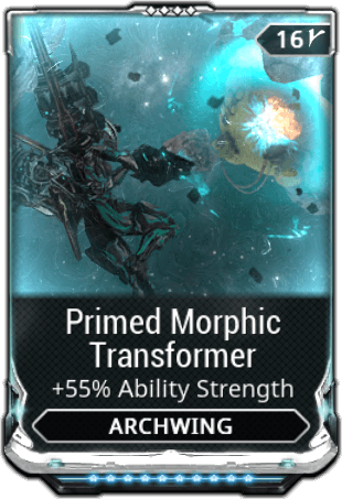 Primed Morphic Transformer is the primed version of the Morphic Transformer mod , which increases the Ability Strength of Archwing abilities.