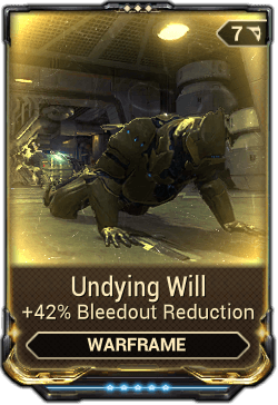 Undying Will is a Warframe mod which, at max rank, increases bleedout time to 34.4 seconds.