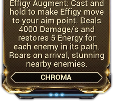 - Subsuming Chroma to the Helminth will offer Elemental Ward and its augments to be used by other Warframes. The Ward's effects are determined by the Warframe's primary emission color.