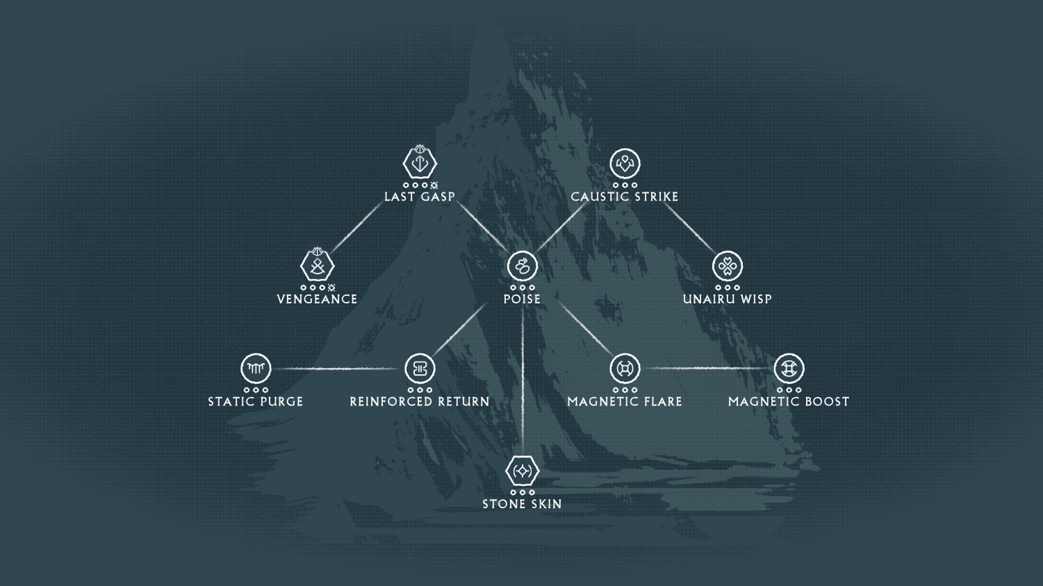The Unairu way trains to become an indomitable soldier. The Tenno of Unairu provide the frontlines with unmatched tenacity, along with direct buffs to allies' offenses and defenses. Those who mastered the Unairu school are granted enhanced damage resistance and damage reflection.