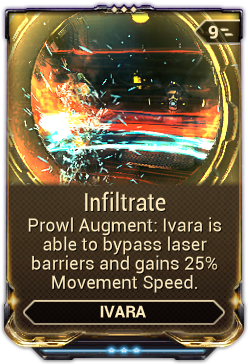 - Fixed Ivaras Infiltrate Augment Mod not protecting you from lasers in the Orokin Moon, Grineer, and Uranus spy mission tilesets.