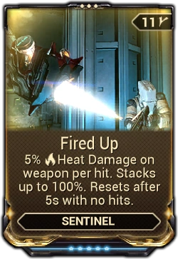 - This Mod was difficult to understand and only worked if the Sentinel weapon already did some amount of Heat damage. The mechanics are now more intuitive and the bonus applies the same way adding a Mod would, so your Sentinel's weapon doesn't need to already do Heat damage to benefit.