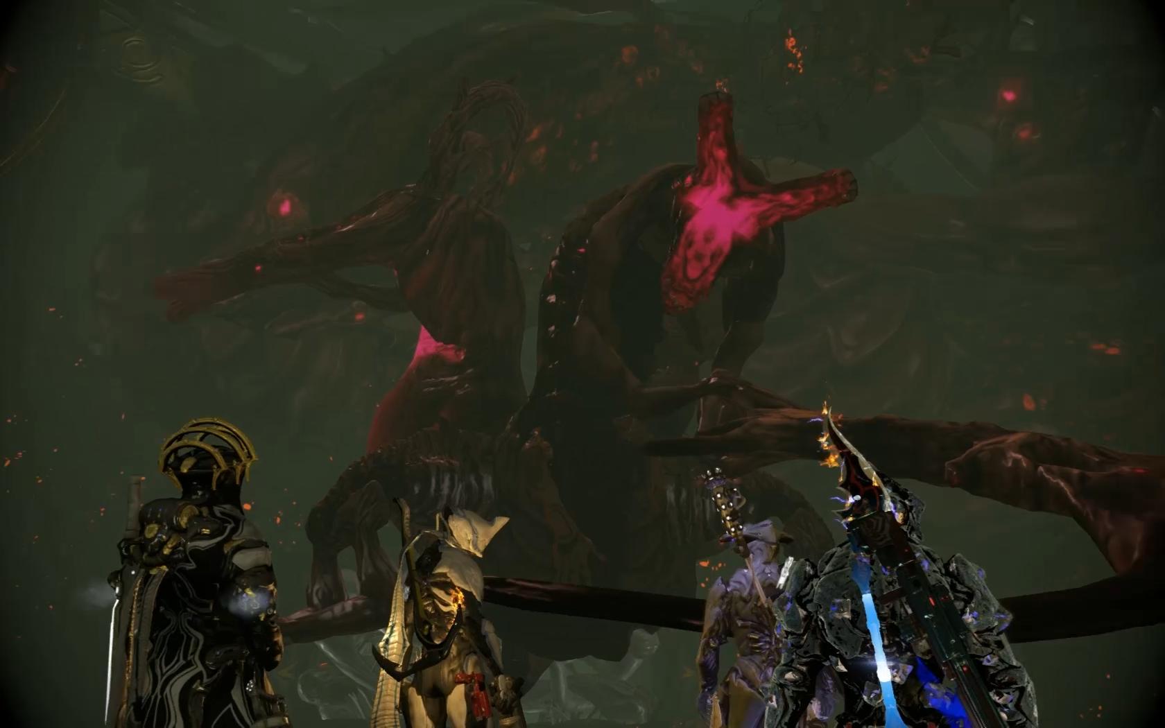 Nekros's components as a mission reward once they reach extraction. Later updates have since applied this to the other bosses. - Underneath the Infested Grineer head there is a person's face, akin to Dark Sector boss Mezner who also is fought in a large arena-type area and whose face is distorted and stretched over the Infested creature.