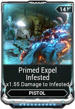 Primed Expel Infested increases the damage of secondary weapons against Infested. The mod increases both the base damage and elemental damage of a weapon.
