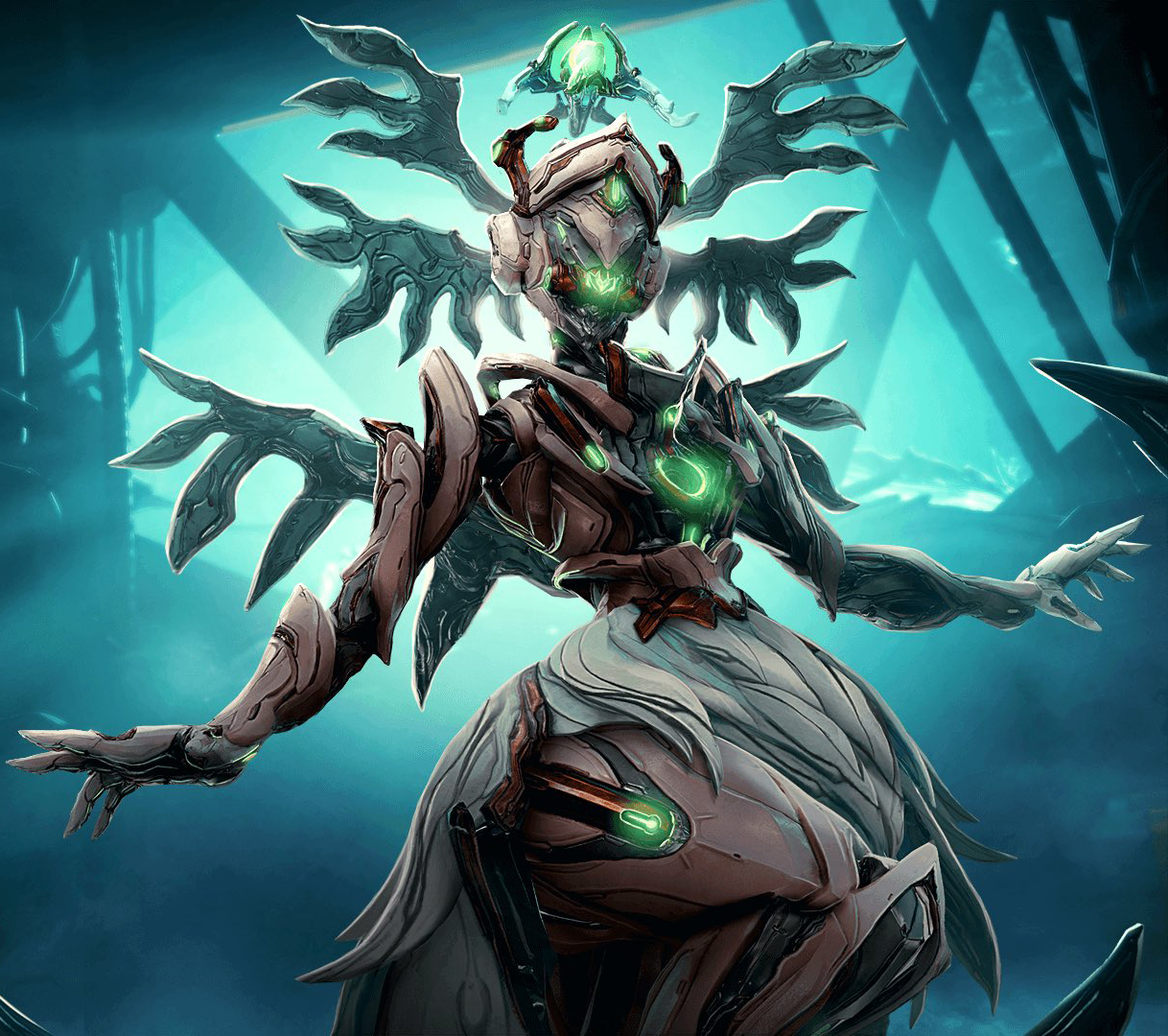 Orokin a coup d'état. Amidst the anthems of devastation, a solemn soul sings proud, her audience awestruck by oblivion's embrace. Blessed be the Lucent Virtuoso, Jade, whose glorious choir casts forth a crescendo of emerald blaze. Before heavenly ascent, thou shall behold one final glimpse: sublime plumes unfurl to seraphic wings most divine. Jade descended from the heavens in Update 36.0 (2024-06-18).