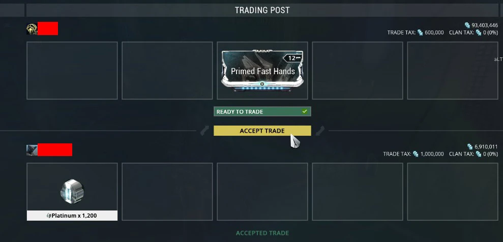 From Baro KiTeer, purchasing Primed Fast Hands mod for 120,000 credits + Ducats 375 + 500 cores to max.
