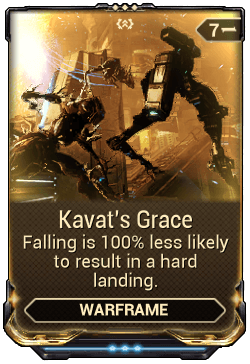 Kavat's Grace is an Exilus mod that allows a Warframe to negate Hard Landings from higher fall velocities.