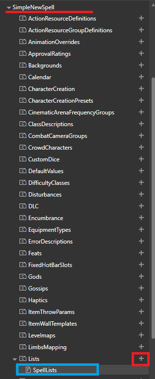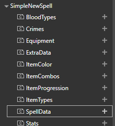 Here, you will see various sections you can open and modify. To create spells, go to SpellData and click the “+” symbol.