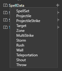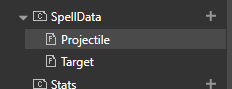 For the target spell we are making, you’ll need to add both Target and Projectile spell data. You might need to expand the SpellData folder to see your new additions.