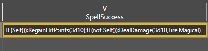 Fill in the SpellSuccess field to define what happens when the caster succeeds. For our new spell, we want two things: we want to heal the caster, and we want to damage the target and any others in the area.