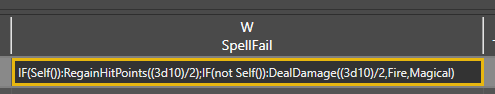 Fill in the SpellFail field to define what happens when the caster fails. We will do almost the same thing as we did for SpellSuccess, but for our new spell, we want to deal only half the healing and half the damage on fail. We can take what we wrote for SpellSuccess and modify it slightly by dividing the values by 2 using /2.
