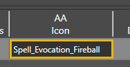 Here you can define an icon. For the purposes of this guide, let's reuse an existing spell icon from the Fireball spell: Spell_Evocation_Fireball.