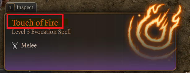 This will be the spell name shown on the tooltip. Let’s call our new spell Touch of Fire.