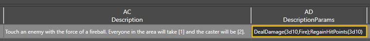 So into DescriptionParms, we’ll input DealDamage(3d10,Fire);RegainHitPoints(3d10)
