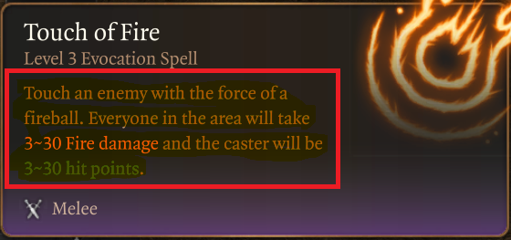 For our new spell FireTouch, we will fill in 1.5 for the TargetRadius. This is the value used for melee range in Baldur’s Gate 3.