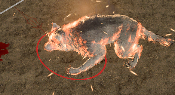 When the spell is used on the wolf, we can see it that it has a fire effect. This is the HitEffect.