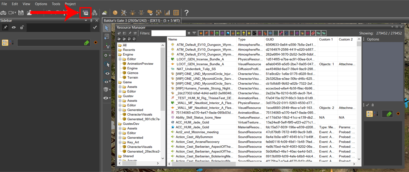 In the main Editor, locate and/or open the Resource Manager by clicking the crayon box icon in the toolbar.