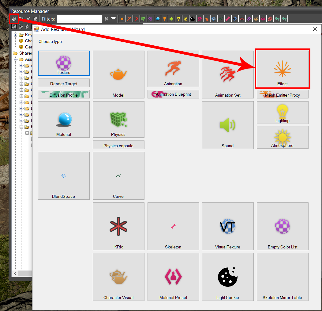 Select the new Paladin package created using the steps above and press the Add Resource button. A new window will open. There, select the resource type Effect.