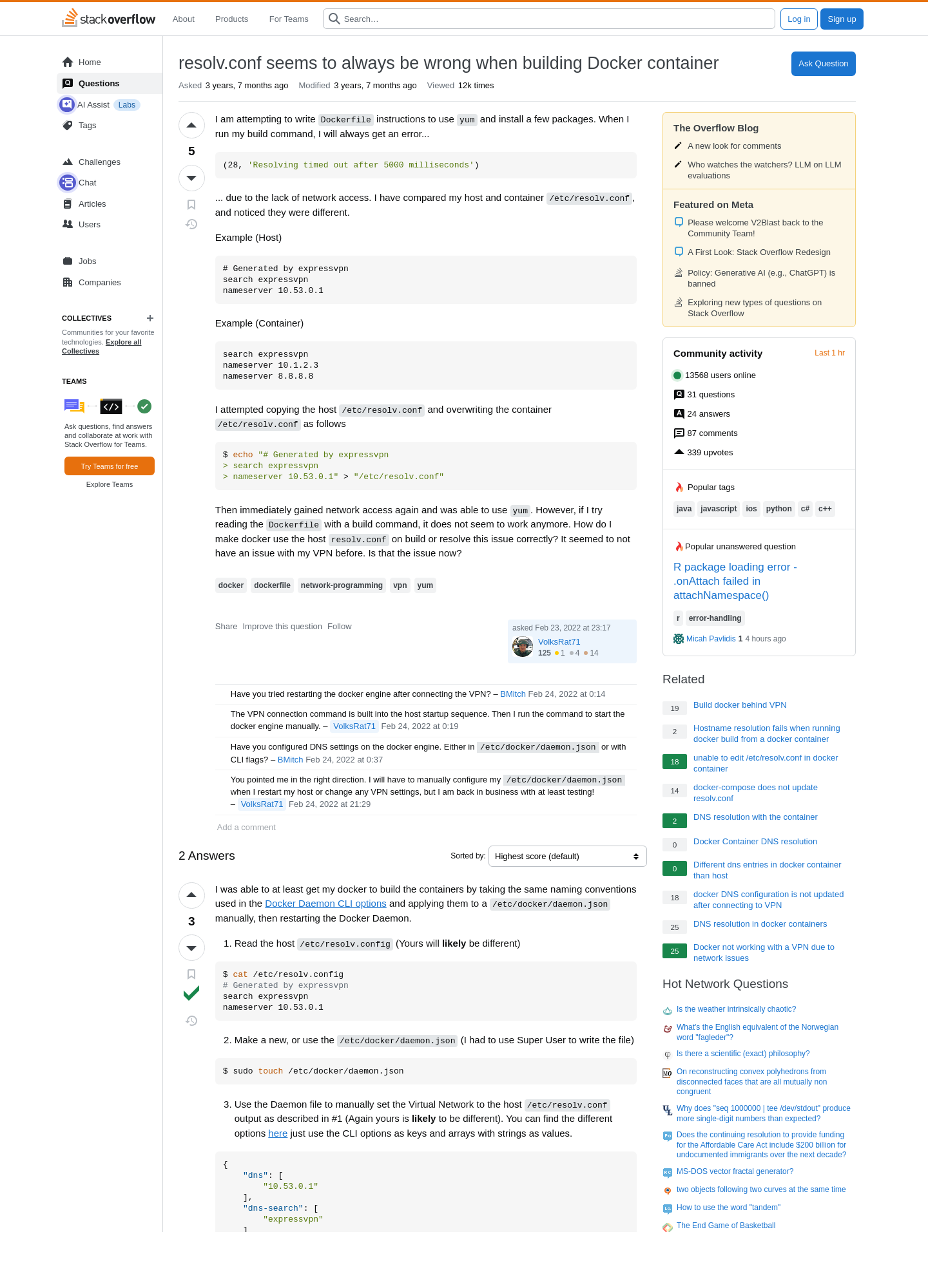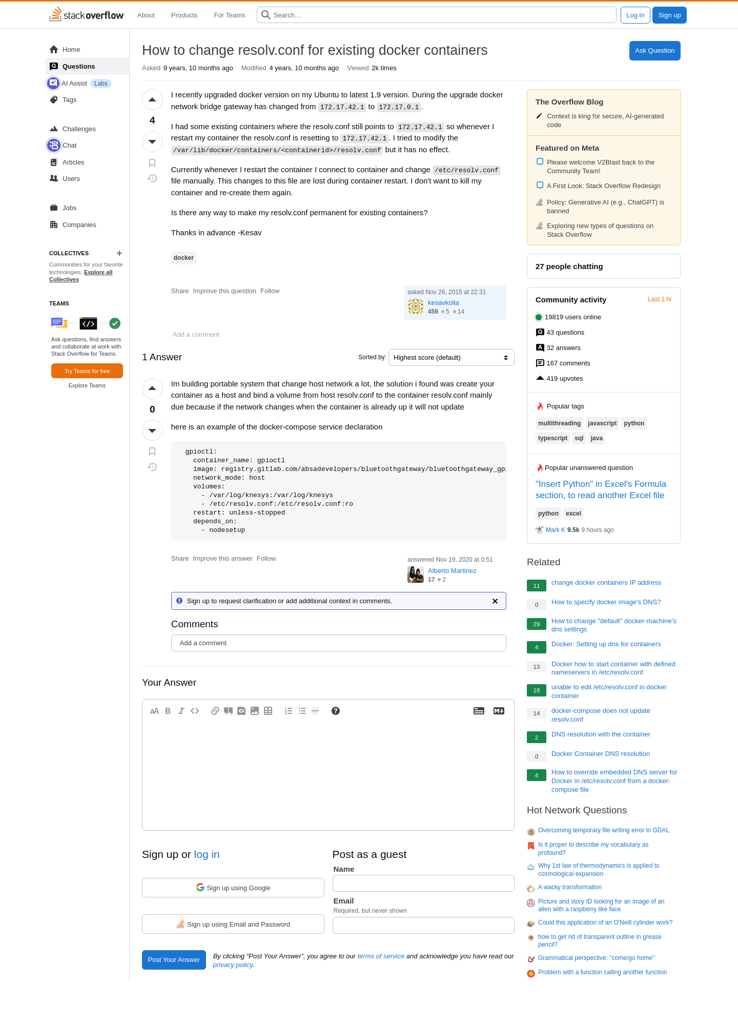 2025-10-08 4:08PM How to change resolv.conf for existing docker containers - Stack Overflow ❢  πŸ“„  πŸ’»  πŸ…·  πŸ††  πŸ“¦  πŸ†  πŸ…Ό  πŸ…Ά  πŸ“Ό  πŸ›   9 https://stackoverflow.com/questions/33947873/how-to-change-resolv-conf-for-existing-docker-containers