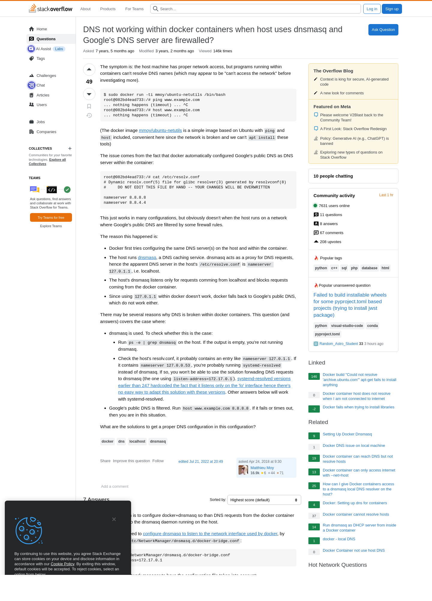 2025-10-08 11:09PM DNS not working within docker containers when host uses dnsmasq and Google's DNS server are firewalled? - Stack Overflow ❢  πŸ“„  πŸ’»  πŸ…·  πŸ††  πŸ“¦  πŸ†  πŸ…Ό  πŸ…Ά  πŸ“Ό  πŸ›   9 https://stackoverflow.com/questions/49998099/dns-not-working-within-docker-containers-when-host-uses-dnsmasq-and-googles-dns/50000642#50000642