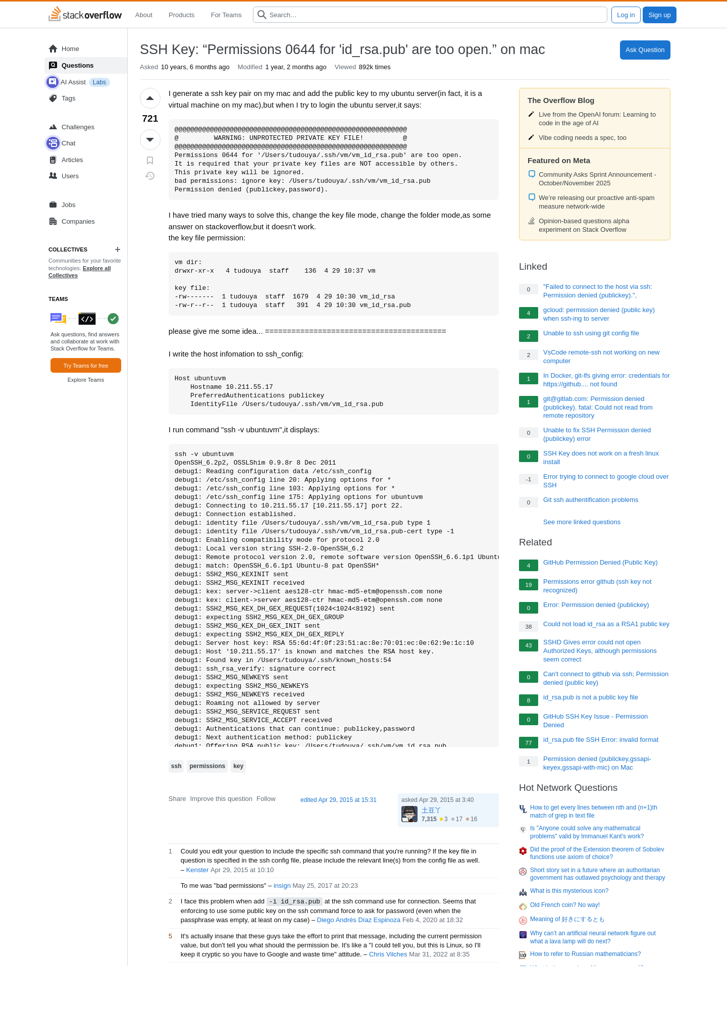 2025-10-31 11:33PM SSH Key: β€œPermissions 0644 for 'id_rsa.pub' are too open.” on mac - Stack Overflow ❢  πŸ“„  πŸ’»  πŸ…·  πŸ††  πŸ“¦  πŸ†  πŸ…Ό  πŸ…Ά  πŸ“Ό  πŸ›   8 https://stackoverflow.com/questions/29933918/ssh-key-permissions-0644-for-id-rsa-pub-are-too-open-on-mac