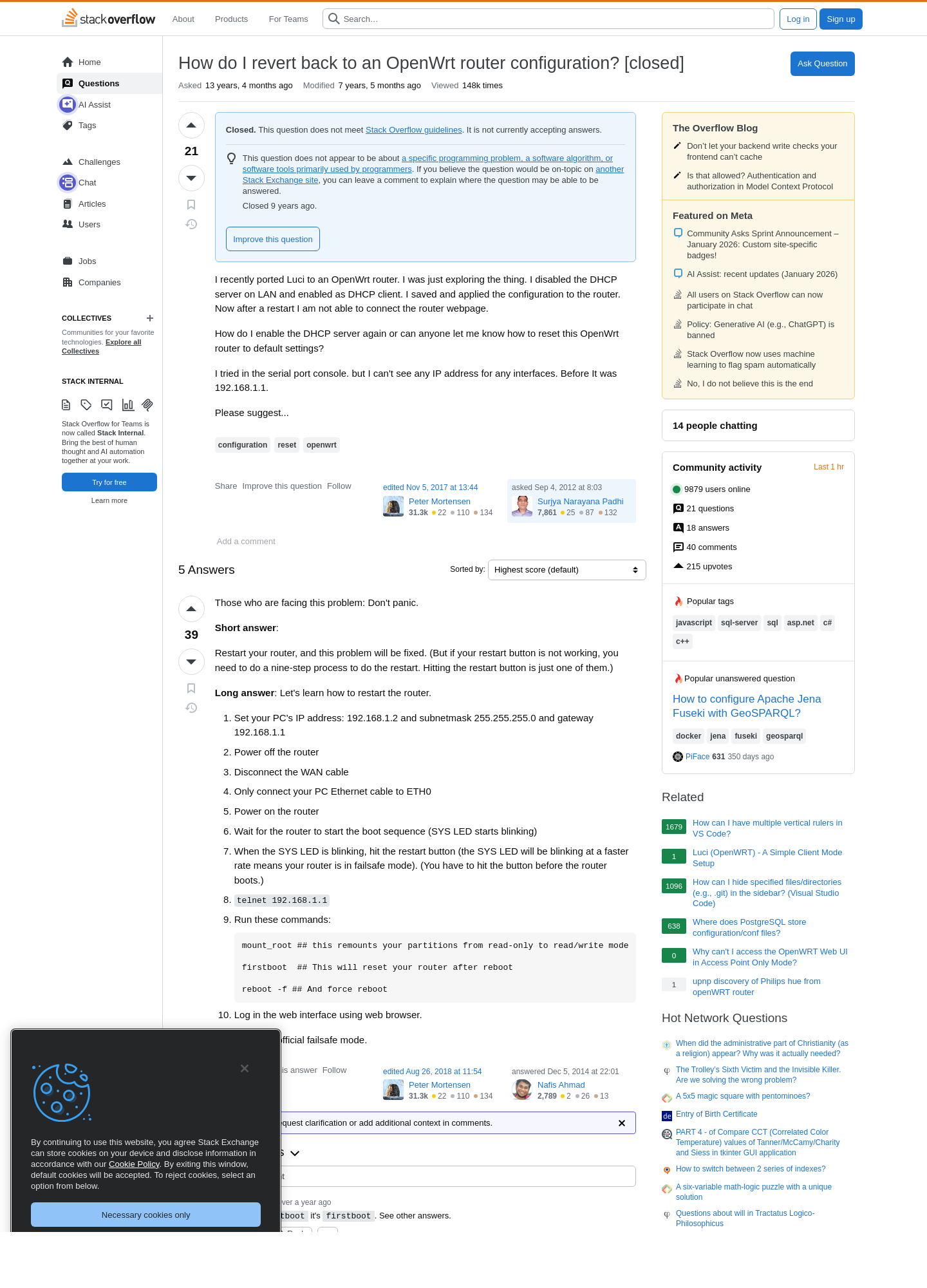 2026-01-21 8:47PM reset - How do I revert back to an OpenWrt router configuration? - Stack Overflow ❢  πŸ“„  πŸ’»  πŸ…·  πŸ††  πŸ“¦  πŸ†  πŸ…Ό  πŸ…Ά  πŸ“Ό  πŸ›   9 https://stackoverflow.com/questions/12259185/how-do-i-revert-back-to-an-openwrt-router-configuration