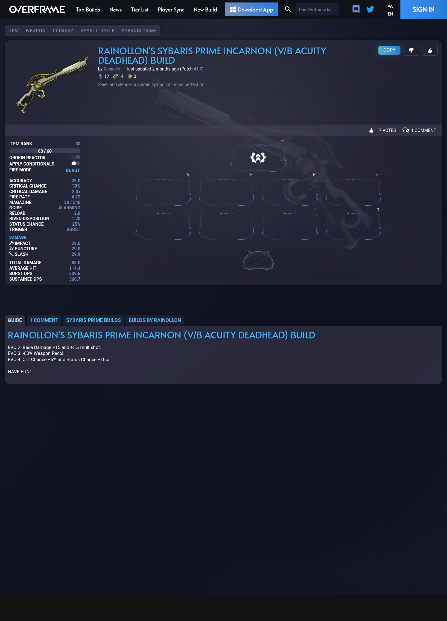 2026-03-05 1:46PM 4 Forma Sybaris Prime Build by Rainollon - RAINOLLON'S SYBARIS PRIME INCARNON (V/B ACUITY DEADHEAD) BUILD - Overframe puppy ❢  πŸ“„  πŸ’»  πŸ…·  πŸ††  πŸ“¦  πŸ†  πŸ…Ό  πŸ…Ά  πŸ“Ό  πŸ›   8 https://overframe.gg/build/784194/sybaris-prime/rainollons-sybaris-prime-incarnon-v-b-acuity-deadhead-build/