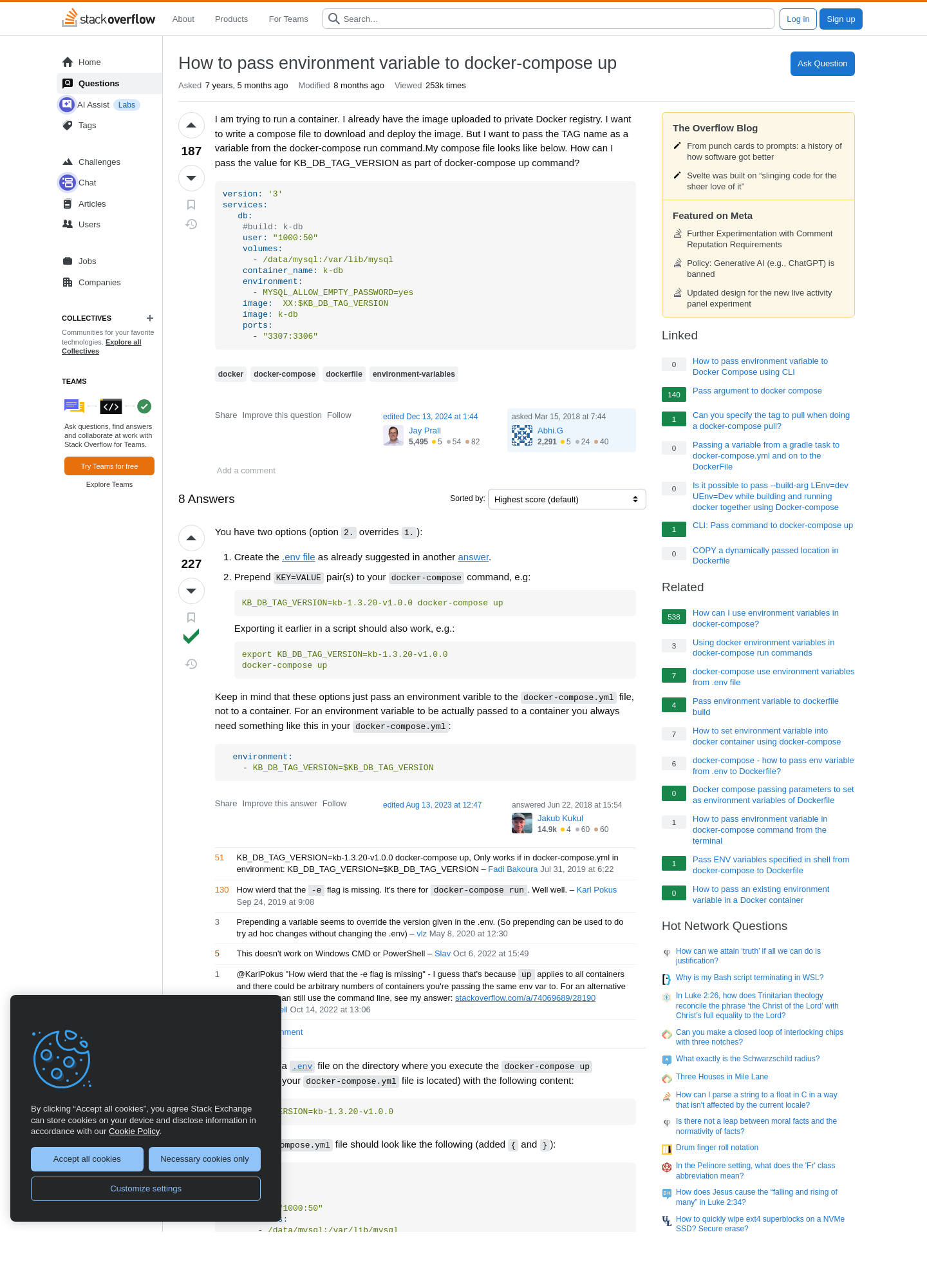 How to pass environment variable to docker-compose up - Stack Overflow