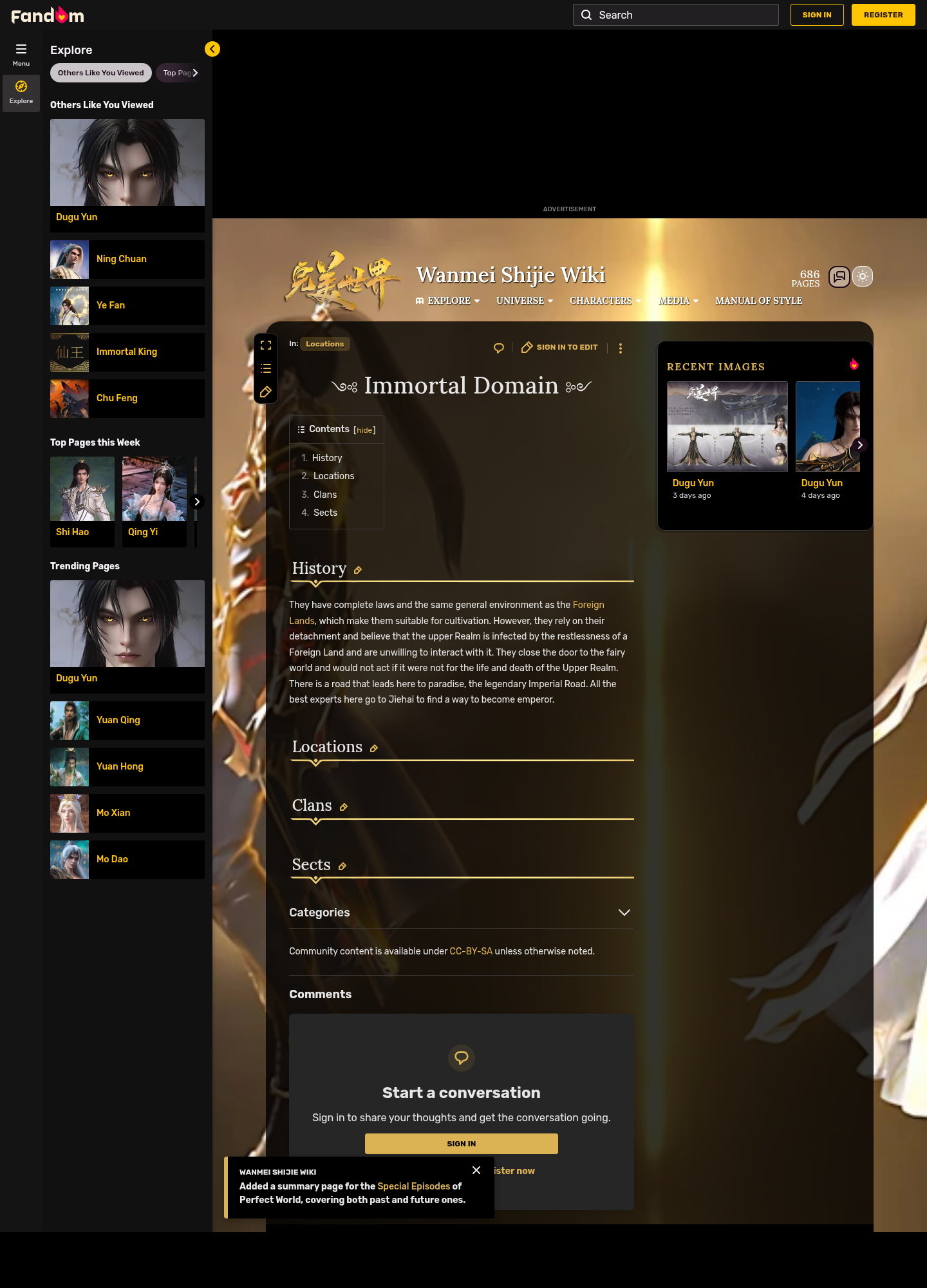 https://wanmei-shijie.fandom.com/wiki/Immortal_Realm