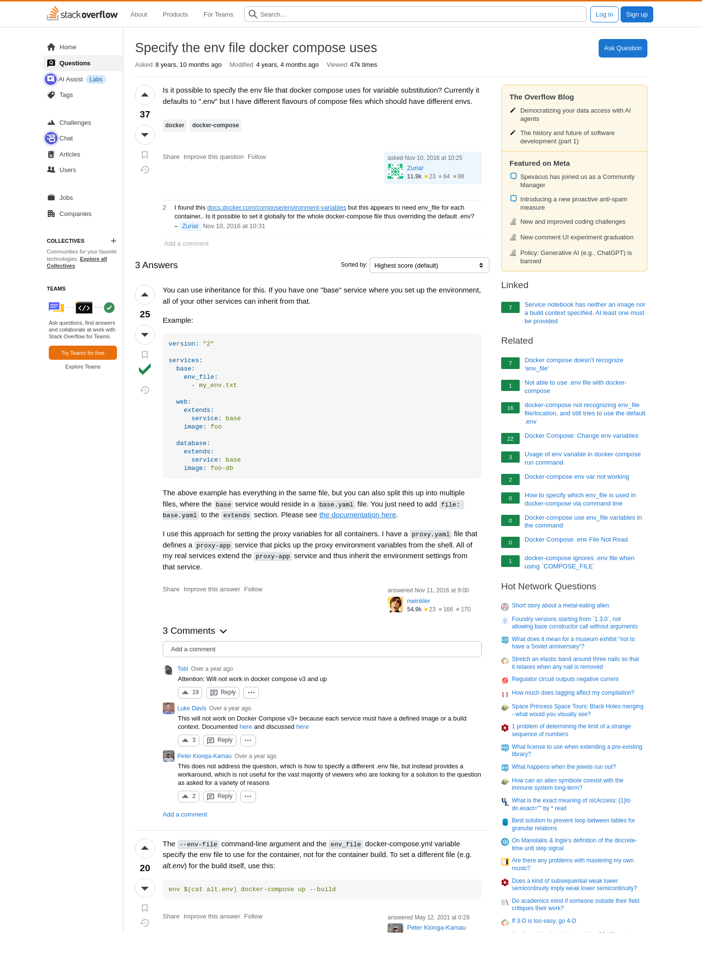 Specify the env file docker compose uses - Stack Overflow