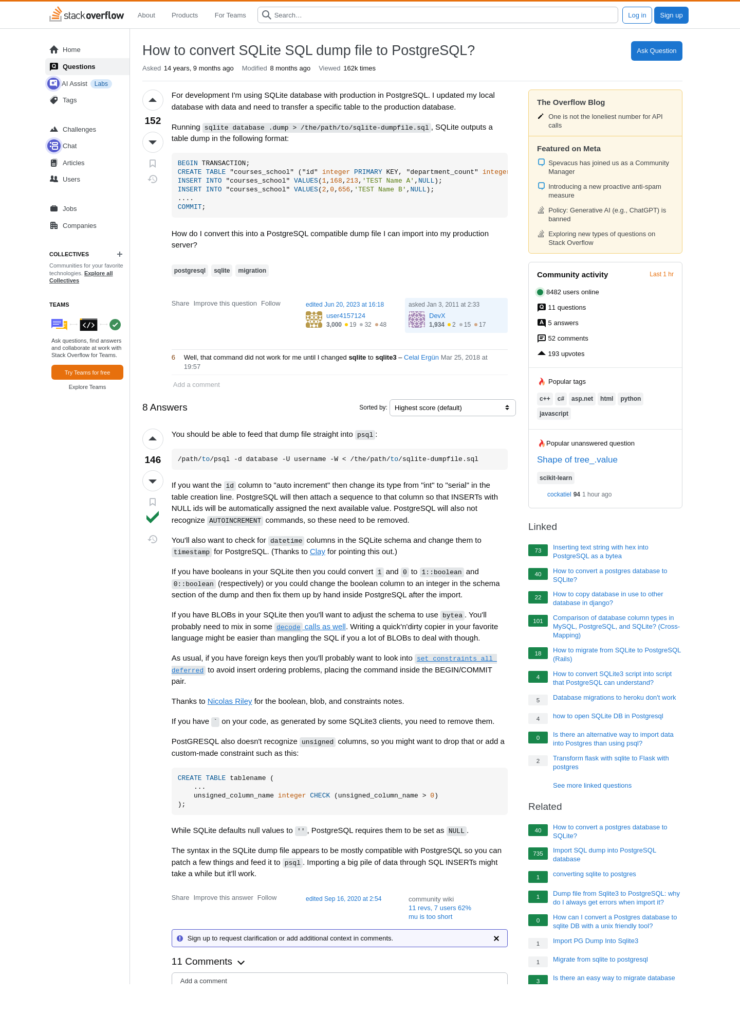 How to convert SQLite SQL dump file to PostgreSQL? - Stack Overflow