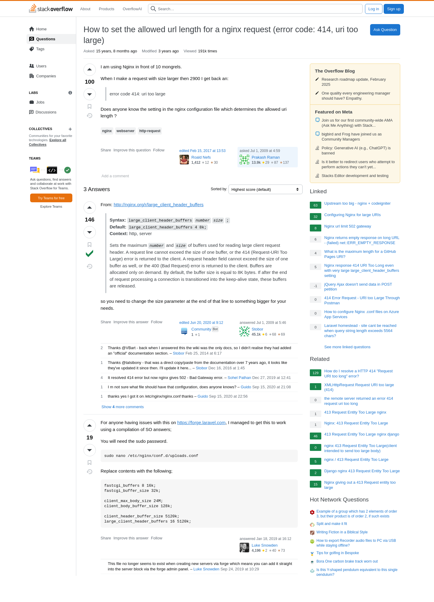 webserver - How to set the allowed url length for a nginx request (error code: 414, uri too large) - Stack Overflow